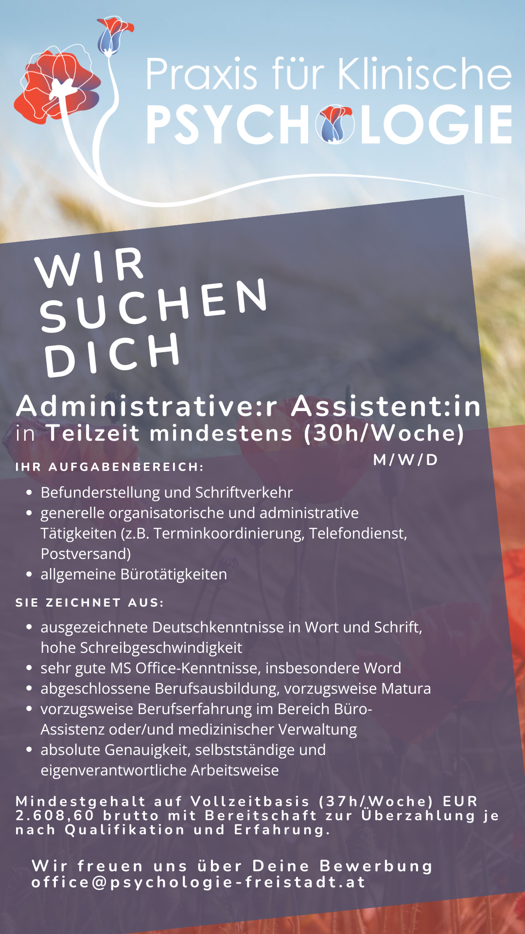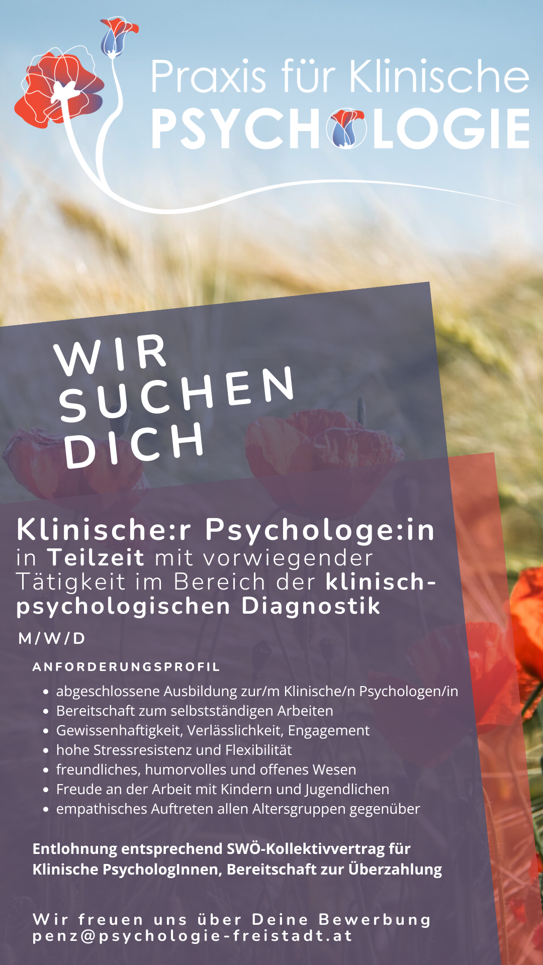 Wir freuen uns über Ihre Bewerbung unter penz@psychologie-freistadt.at!